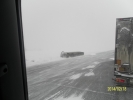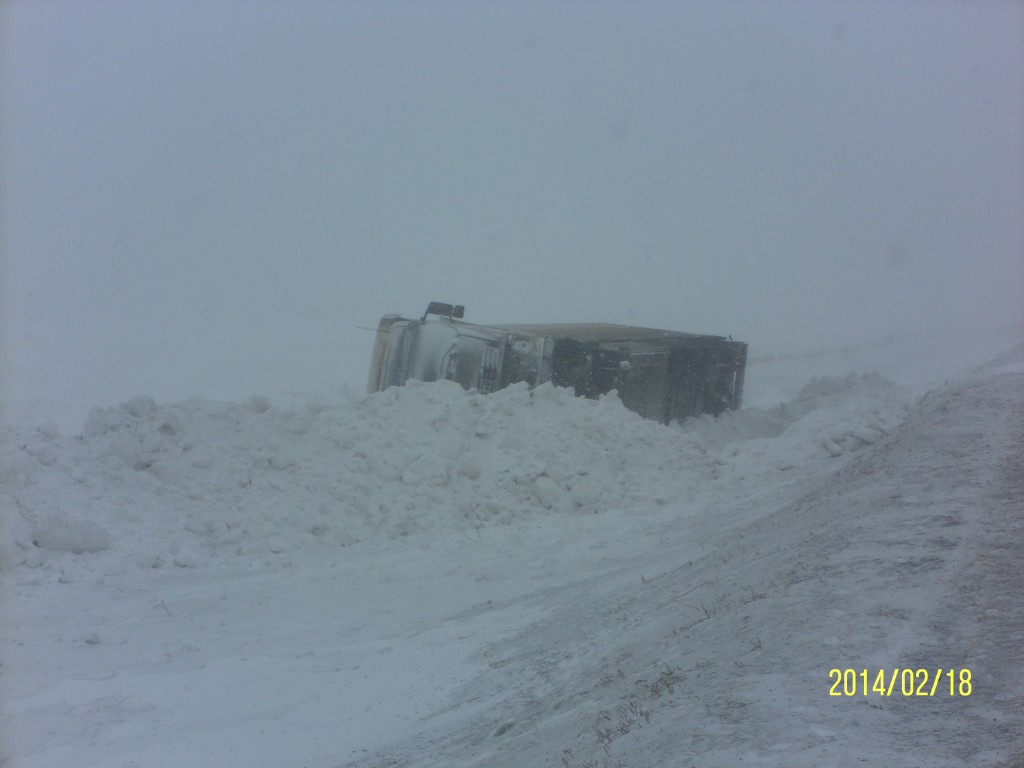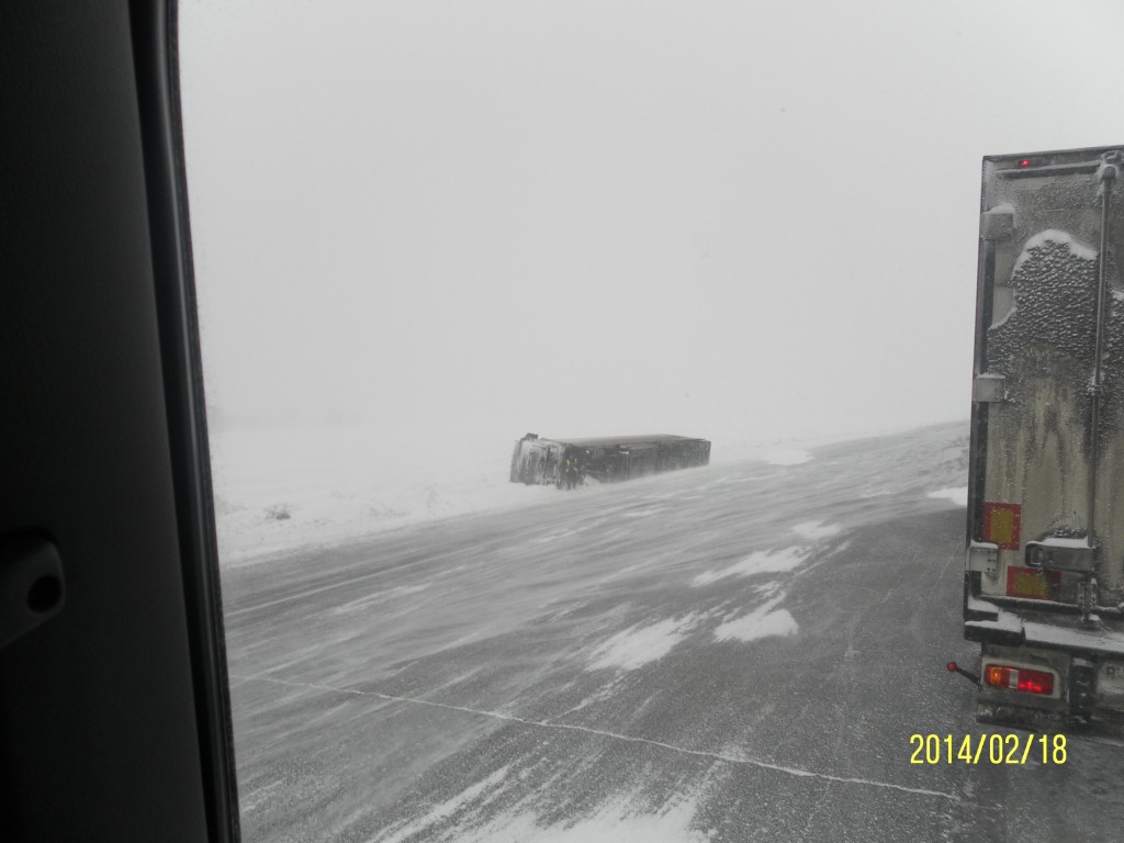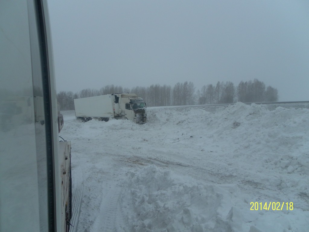 Из-за тяжелых погодных условий 18 февраля в 4 км под Боготолом тяжелая груженая фура сошла с трассы и перевернулась.