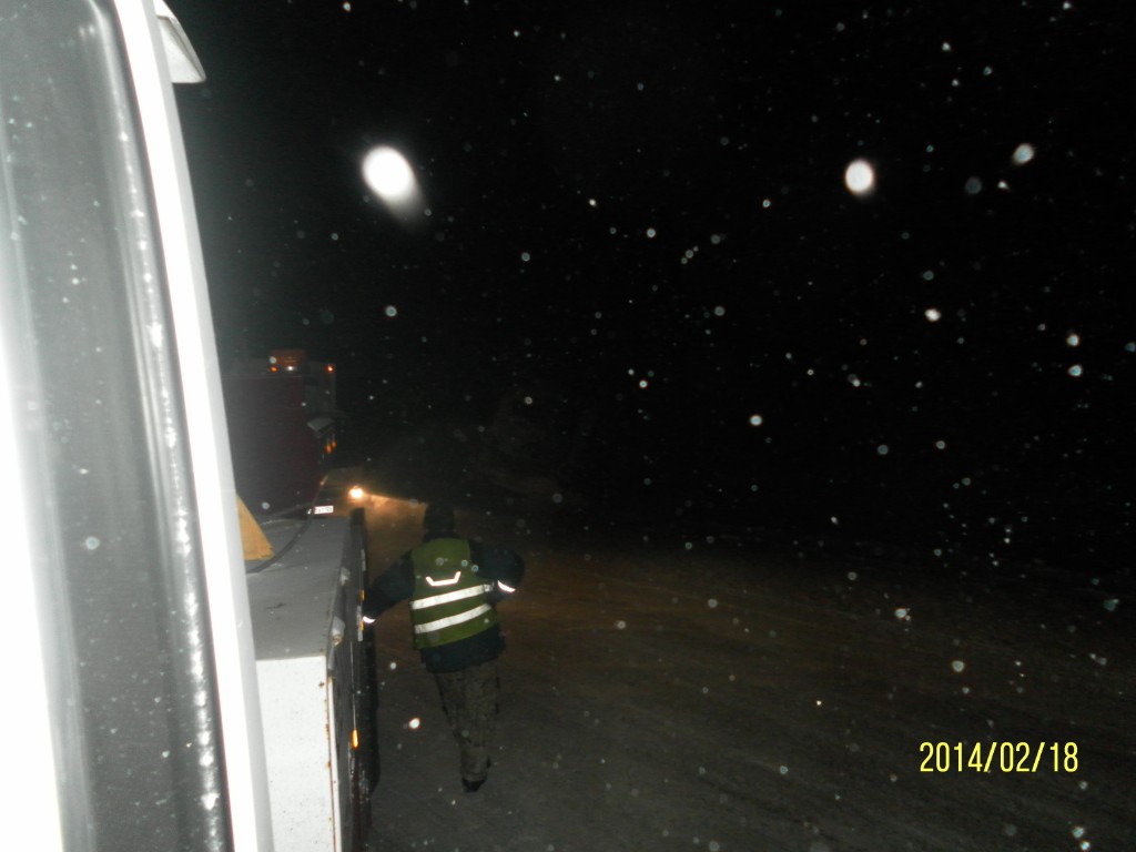Мы решили поставить грузовик на колеса и переместить дальше по ходу движения, чтобы вытащить на дорогу в более удобном месте. Но, как бы ни был силен наш грузовой эвакуатор, он все-таки не танк и не предназначен для движения по заснеженному бездорожью. Поэтому пришлось вызвать старый добрый трактор, который, как ледокол, проложил нам и грузовику на буксире проход.